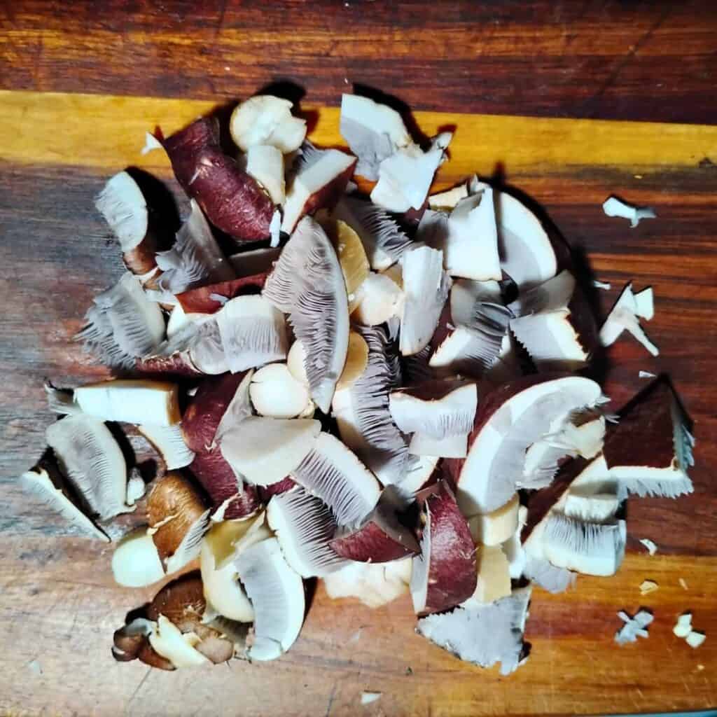 • Dump in the mushrooms and sauté for a few minutes to brown.